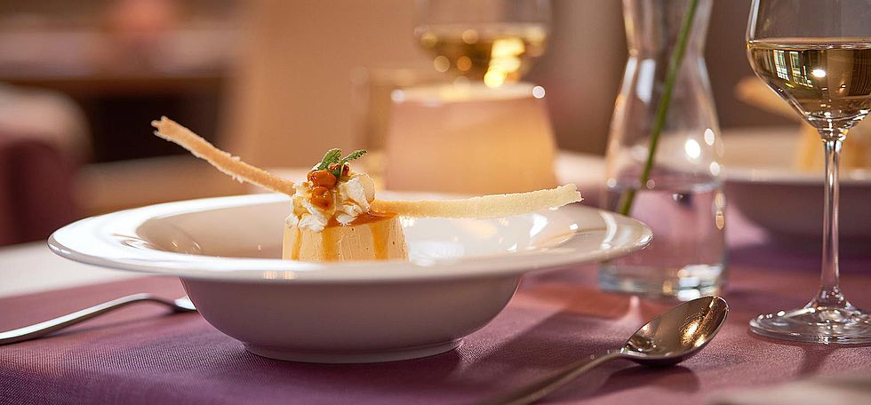 Ihr täglich wechselndes 3-Gänge-Abendmenü wird Ihnen wahlweise mit einem Fisch- oder Fleisch-Hauptgang serviert oder auch auf Wunsch ganz vegetarisch gestaltet.