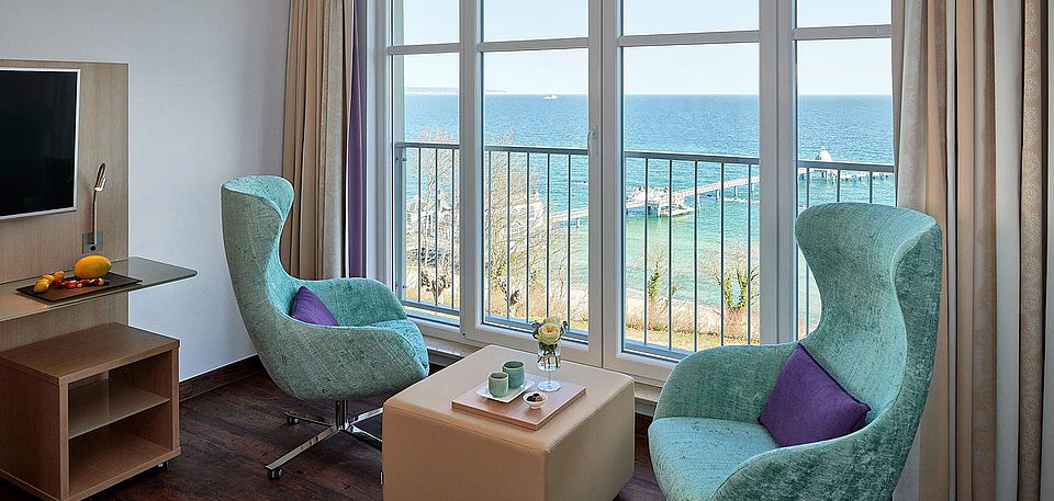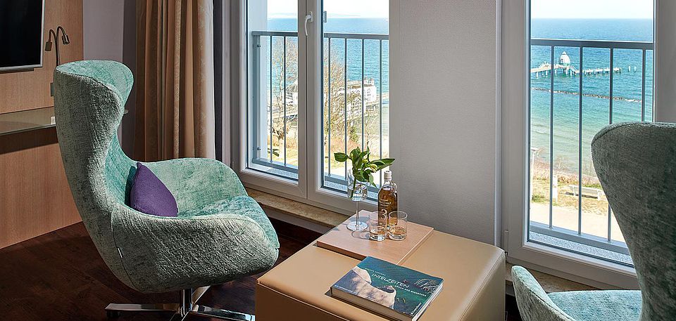 Das Rauschen der Wellen begleitet Sie in Ihren Tag und wiegt Sie in den Schlaf. Gemütliche Ohrensessel und französische Fenster ermöglichen Ihnen bei jedem Wetter einen unvergesslichen Ostseeblick.