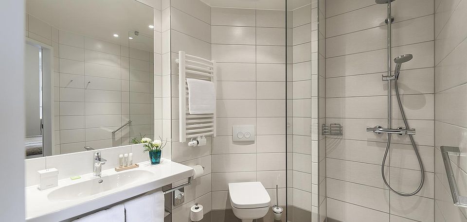 - Föhn, WC, Handtuchtrockner und Kosmetikspiegel