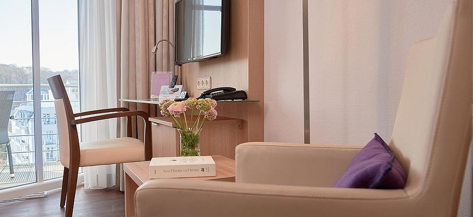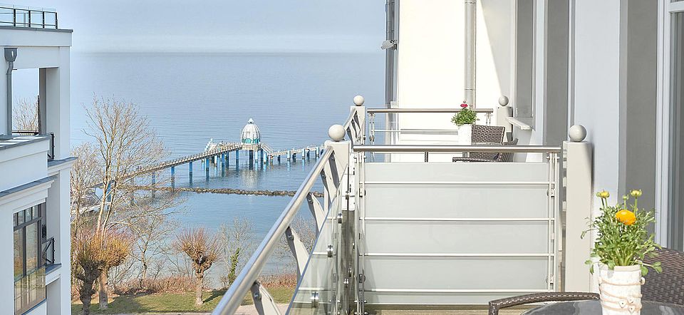 Die Nachmittagssonne, die Meeresluft und den seitlichen Blick zur Ostsee können Sie auf dem Balkon genießen.