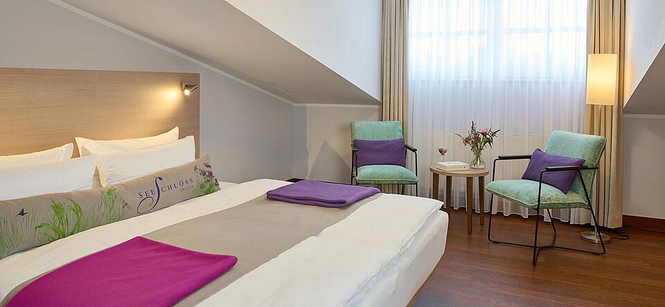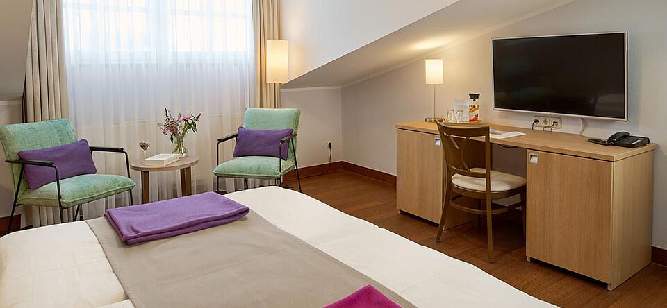 Die Doppelzimmer befinden sich im Dachgeschoss (Dachschräge) und sind bequem per Aufzug zu erreichen.
