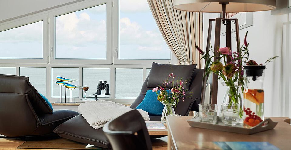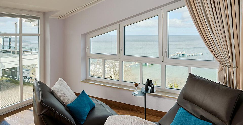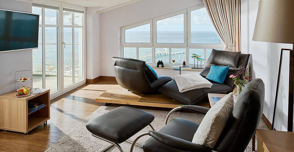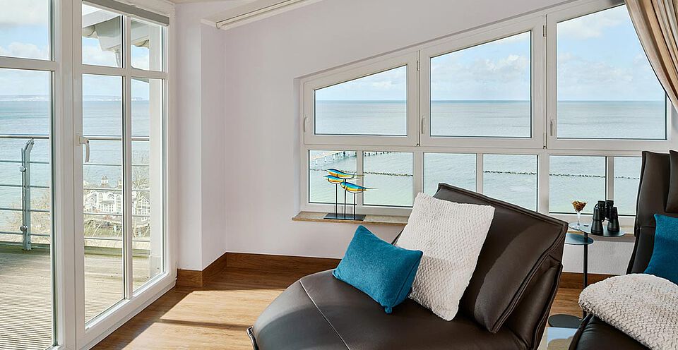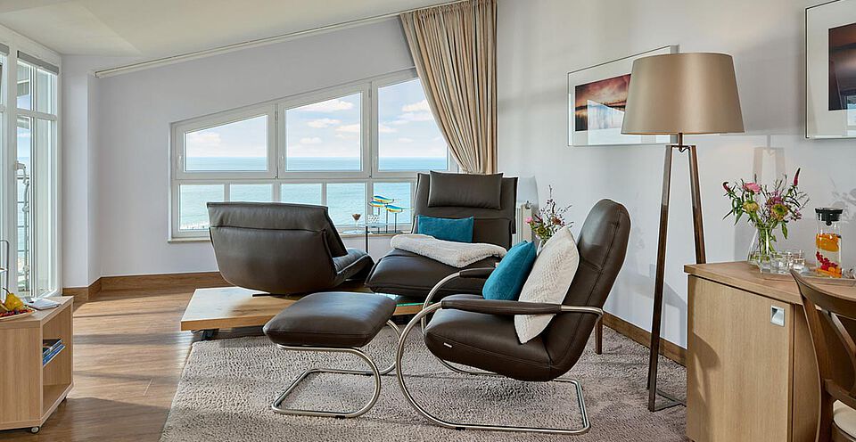In unserer Junior Suite liegt Ihnen die Ostsee bis zum Horizont zu Füßen.